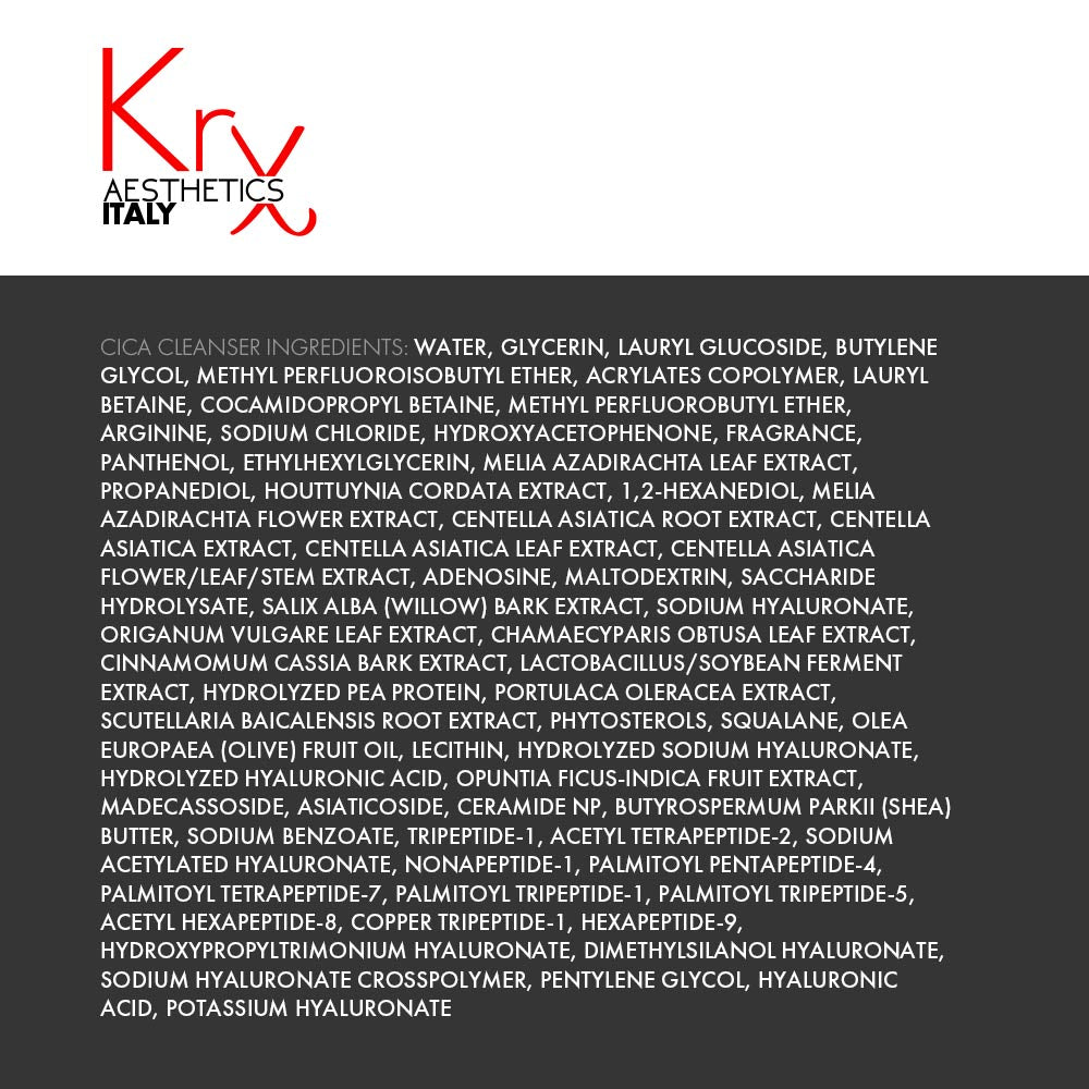 CLEANSER: Water, Glycerin, Lauryl Glucoside, Butylene Glycol, Methyl Perfluoroisobutyl Ether, Acrylates Copolymer, Lauryl Betaine, Cocamidopropyl Betaine, Methyl Perfluorobutyl Ether, Arginine, Sodium Chloride, Hydroxyacetophenone, Fragrance, Panthenol, Ethylhexylglycerin, Melia Azadirachta Leaf Extract, Propanediol, Houttuynia Cordata Extract, 1,2-Hexanediol, Melia Azadirachta Flower Extract, Centella Asiatica Root Extract, Centella Asiatica Extract, Centella Asiatica Leaf Extract, Centella Asiatica Flower/Leaf/Stem Extract, Adenosine, Maltodextrin, Saccharide Hydrolysate, Salix Alba (Willow) Bark Extract, Sodium Hyaluronate, Origanum Vulgare Leaf Extract, Chamaecyparis Obtusa Leaf Extract, Cinnamomum Cassia Bark Extract, Lactobacillus/Soybean Ferment Extract, Hydrolyzed Pea Protein, Portulaca Oleracea Extract, Scutellaria Baicalensis Root Extract, Phytosterols, Squalane, Olea Europaea (Olive) Fruit Oil, Lecithin, Hydrolyzed Sodium Hyaluronate, Hydrolyzed Hyaluronic Acid, Opuntia Ficus-Indica Fruit Extract, Madecassoside, Asiaticoside, Ceramide NP, Butyrospermum Parkii (Shea) Butter, Sodium Benzoate, Tripeptide-1, Acetyl Tetrapeptide-2, Sodium Acetylated Hyaluronate, Nonapeptide-1, Palmitoyl Pentapeptide-4, Palmitoyl Tetrapeptide-7, Palmitoyl Tripeptide-1, Palmitoyl Tripeptide-5, Acetyl Hexapeptide-8, Copper Tripeptide-1, Hexapeptide-9, Hydroxypropyltrimonium Hyaluronate, Dimethylsilanol Hyaluronate, Sodium Hyaluronate Crosspolymer, Pentylene Glycol, Hyaluronic Acid, Potassium Hyaluronate