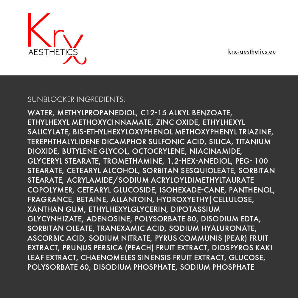 Titanium Dioxide, Butylene Glycol, Octocrylene, Niacinamide, Glyceryl Stearate, Tromethamine, 1,2-Hex-anediol, PEG- 100 Stearate, Cetearyl Alcohol, Sorbitan Sesquioleate, Sorbitan Stearate, Acrylamide/Sodium Acryloyldimethyltaurate Copolymer, Cetearyl Glucoside, Isohexade-cane, Panthenol, Fragrance, Betaine, Allantoin, Hydroxyethy|cellulose, Xanthan Gum, Ethylhexylglycerin, Dipotassium Glycynhizate, Adenosine, Polysorbate 80, Disodium EDTA, Sorbitan Oleate, Tranexamic Acid, Sodium Hyaluronate, Ascorbic Acid, Sodium Nitrate, Pyrus Communis (Pear) Fruit Extract, Prunus Persica (Peach) Fruit Extract, Diospyros Kaki Leaf Extract, Chaenomeles Sinensis Fruit Extract, Glucose, Polysorbate 60, Disodium Phosphate, Sodium Phosphate